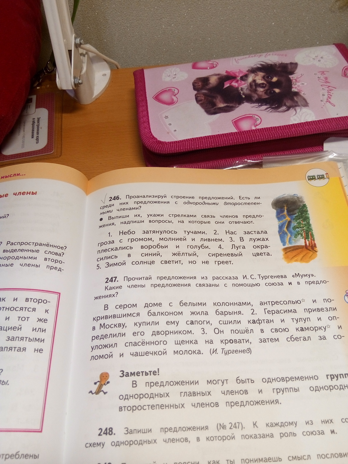5.Солнце (что делает?) светит (когда?) зимой.