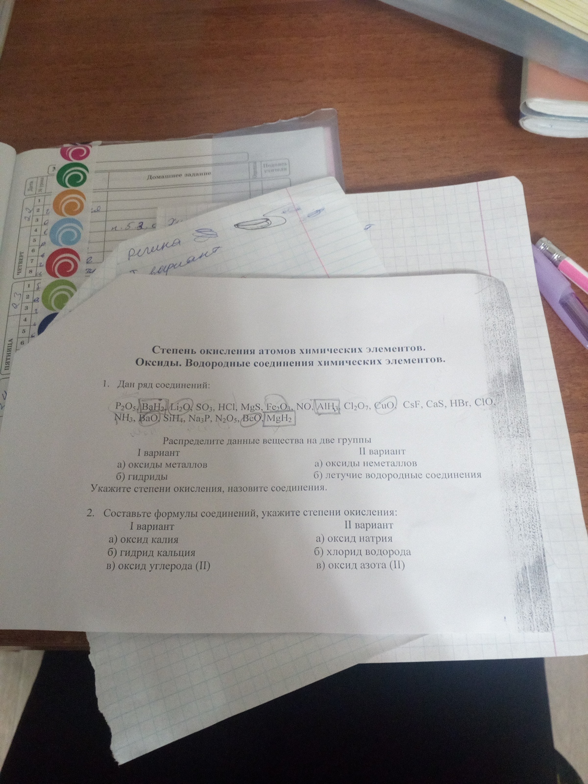 1)P2O5 (оксид фосфора+5) SO3 (оксид серы +6) NO (оксид азота +2) Cl2O7 (оксид хлора +7) ClO (оксид хлора +2) N2O5 (Оксид азота +5)