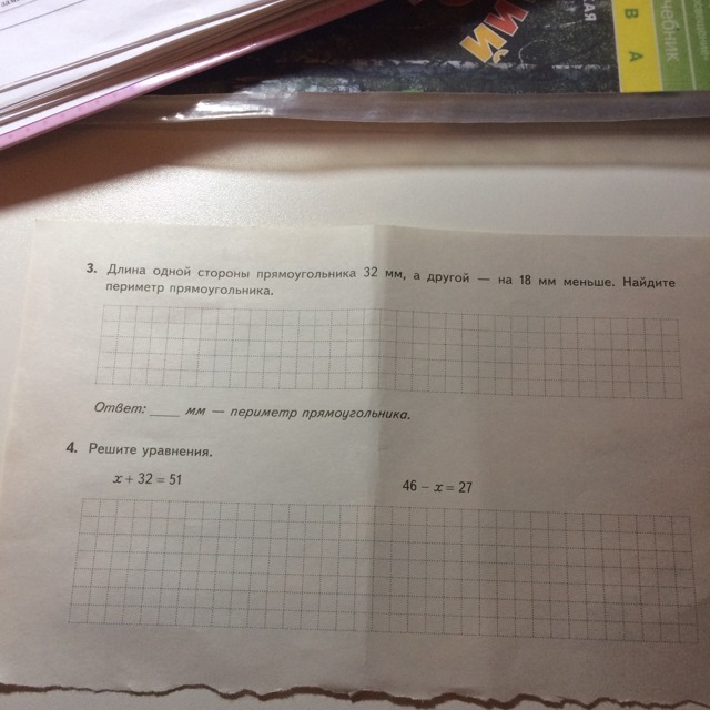 Р=32 мм-18мм=14(мм) 2 сторона прямоугольника