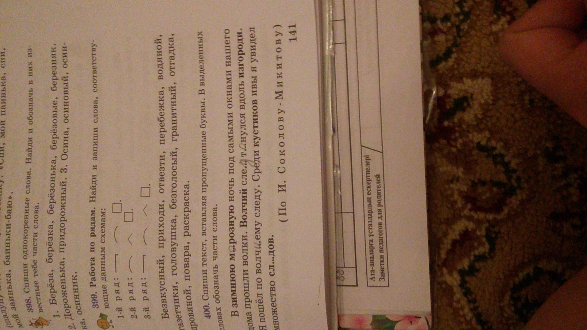 спиши текст, вставляя пропущенные буквы. В выделенных словах обозначь части слова. В зимнюю м...рознь ночь под самыми окнами нашего дома прошли волки. Я пошёл по вол...ему следу.