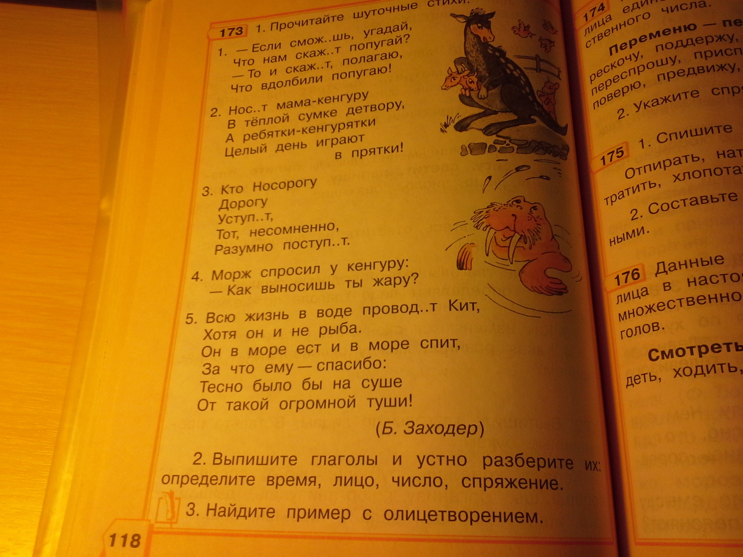1 Прочитайте шуточные стихи Вставьте правильные буквы 2 выпишите глаголы и определите их Определите время лицо число спряжение 3 Найди примеры олицетворения
