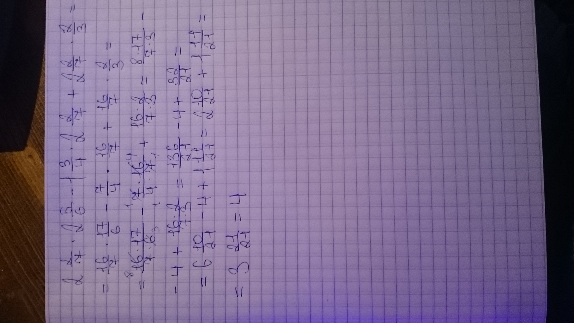 2 целых 2/7 * 2 целых 5/6 - 1 целая 3/4 * 2 целых 2/7 + 2 целых 2/7 * 2/3.