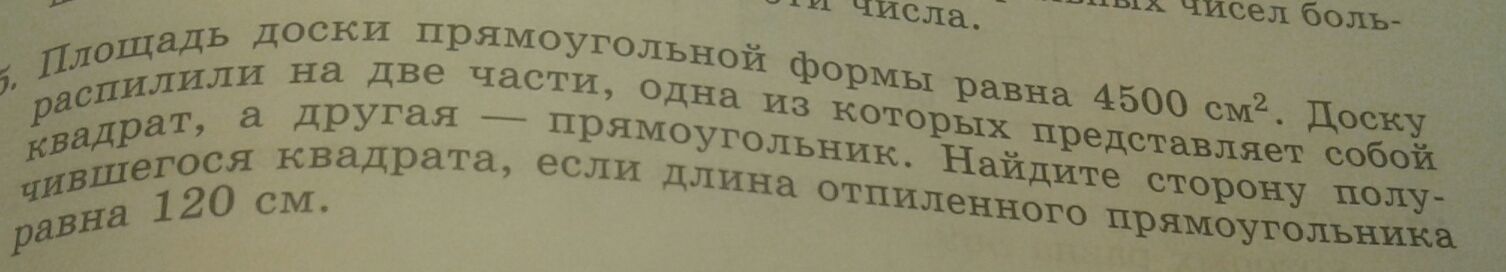 Пусть х - сторона квадрата, тогда (х+120) см - длина доски прямоуг. формы
