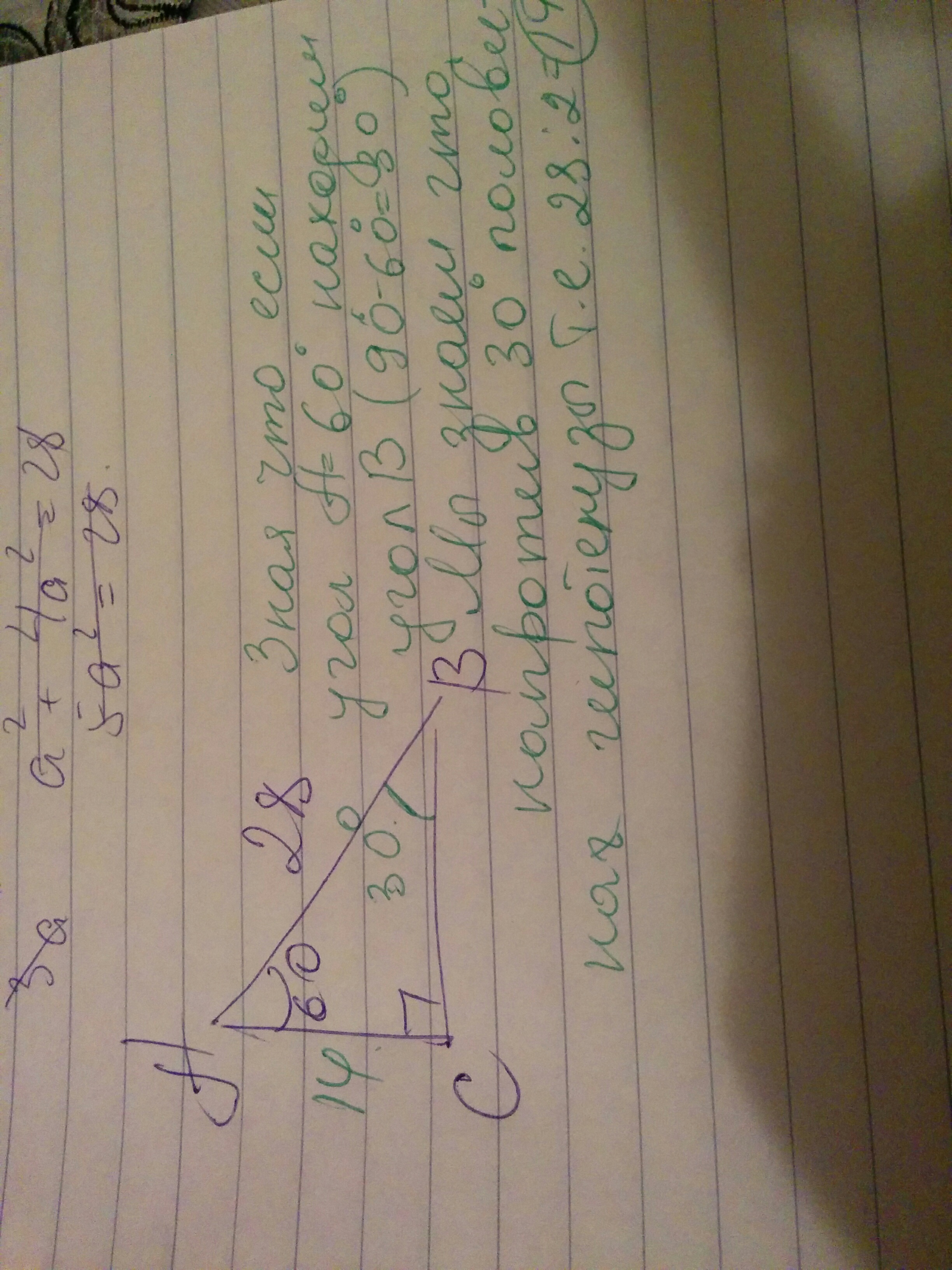угол В=30 градусов