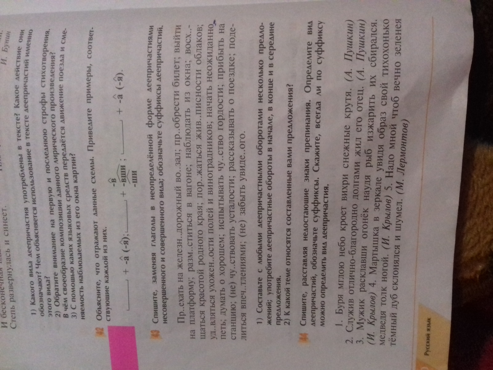 приехав на железнодорожный вокзал,приобретя билет, выйдя на платформу, разместившись в вагоне, наблюдая из окна, восхищаясь красотой родного края, поражаясь живописности облаков, удивляясь ухоженности полей и виноградников, начав неожиданно петь, думая о хорошем, испытывая чувство гордости, прибыв на станцию, не чувствуя усталости, рассказывая о поездке, поделившись впечатлениями, не забывая увиденного