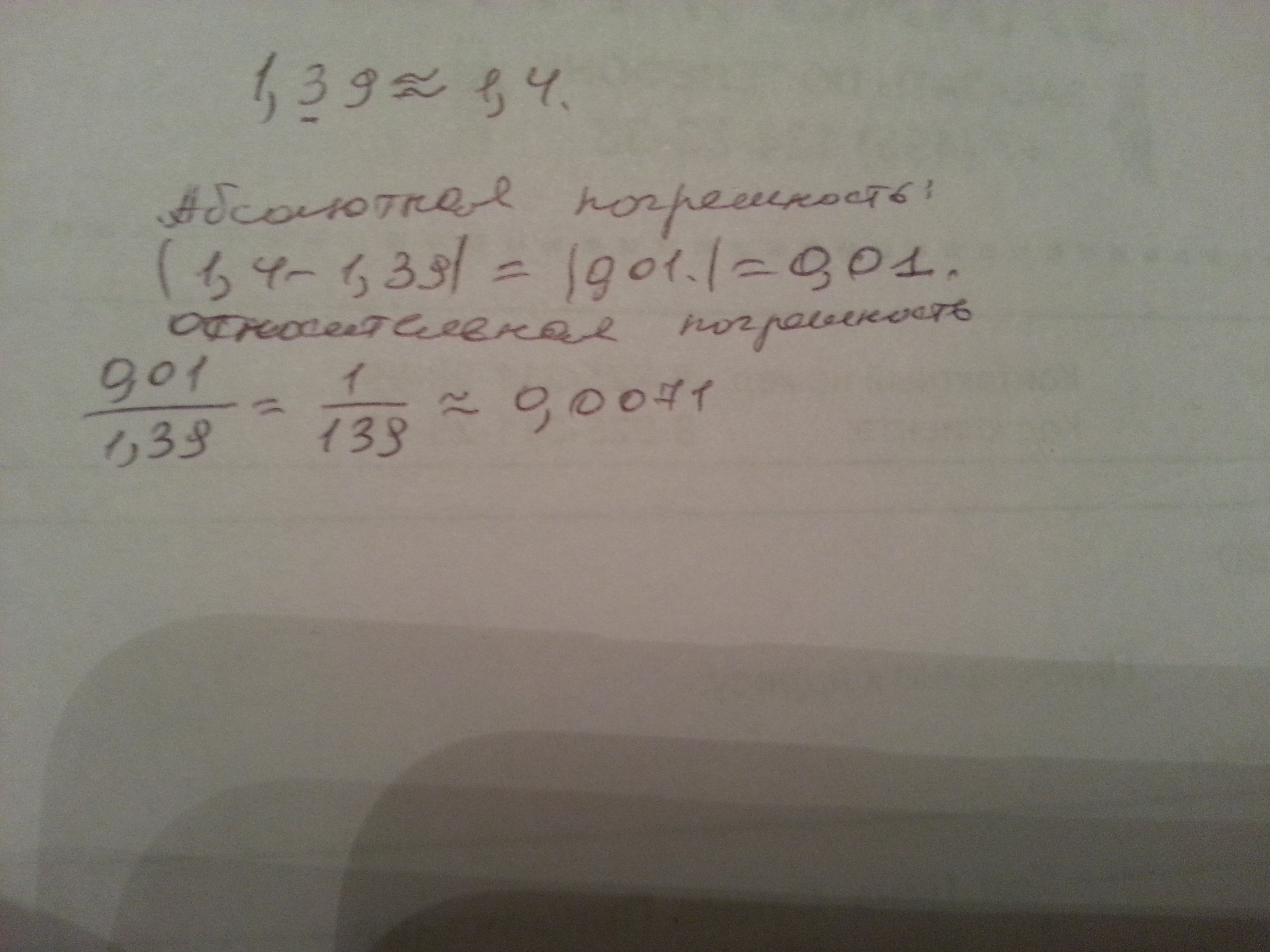 0.01 : 1.39=0.007194245 Относительная погрешность