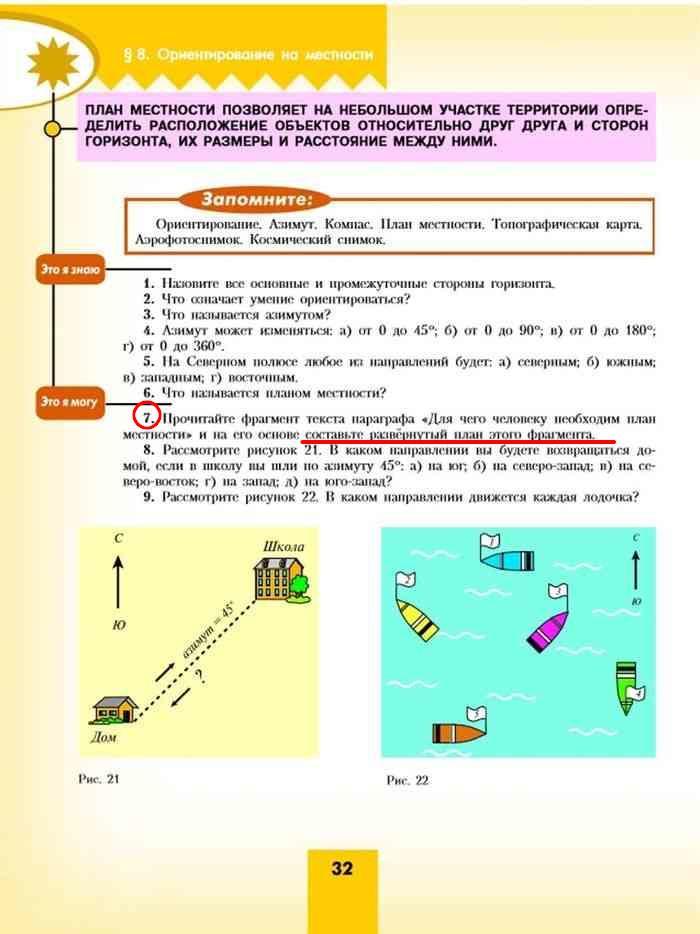 География 5 класс. страница 32 упр 7. прочитайте фрагмент текста параграфа для чего человеку необходим план местности и на его основе составьте развёрнутый план этого фрагмента