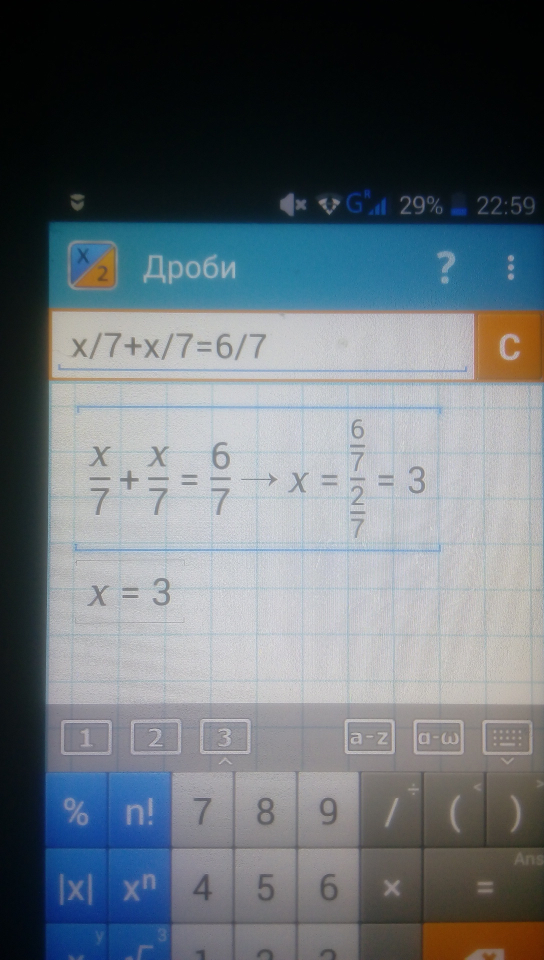 2х/7=6/7 пропорция произведения крайних равно произведению средних