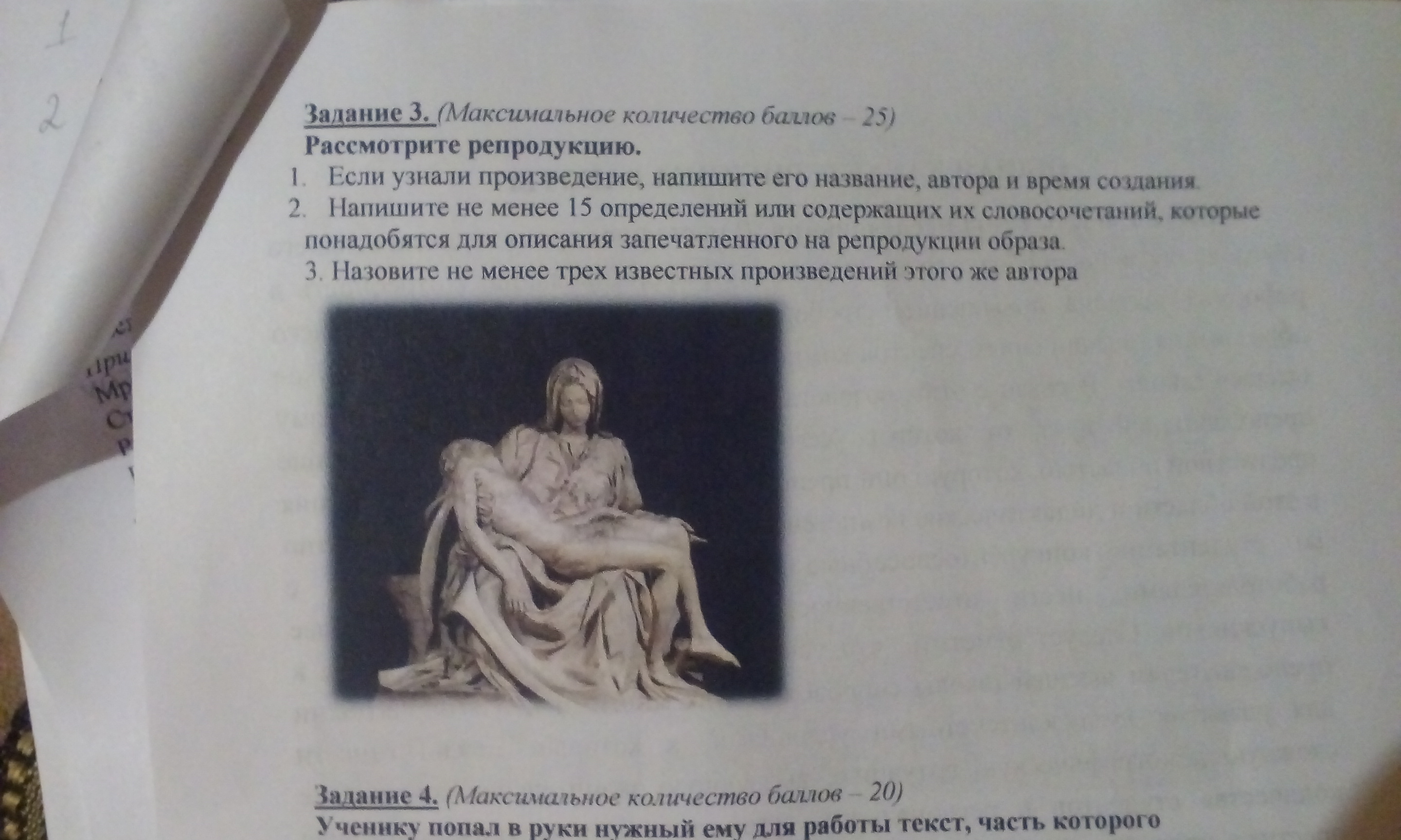 4. Пьета - Микеланджело, 1500 г. Три известных произведения: Сотворение Адама, статуя Давида, Ливийская сивилла.