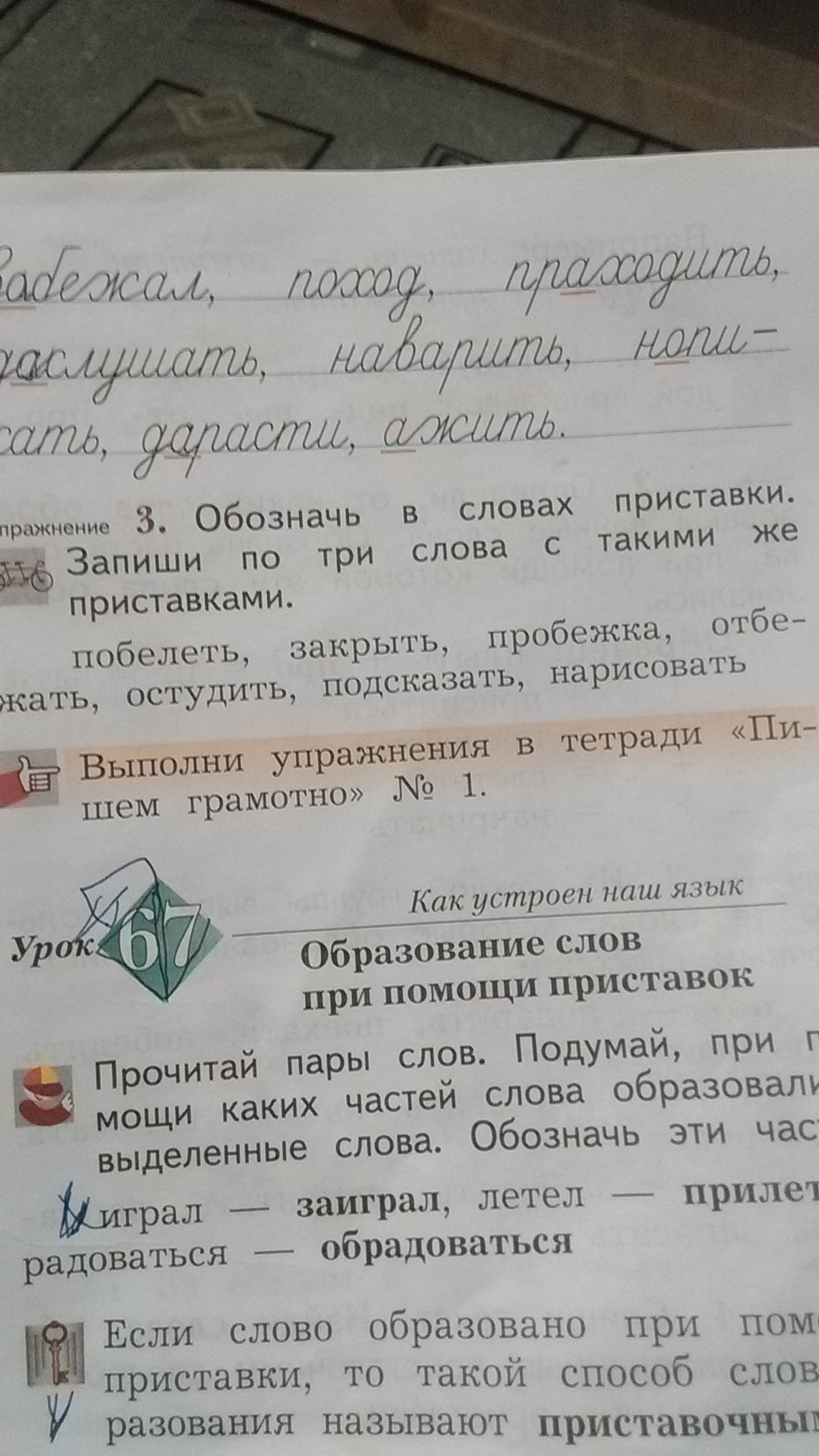 по-белеть,за-крыть,про-бежка,от-бежать,о-студить,под-сказать,на-рисовать.