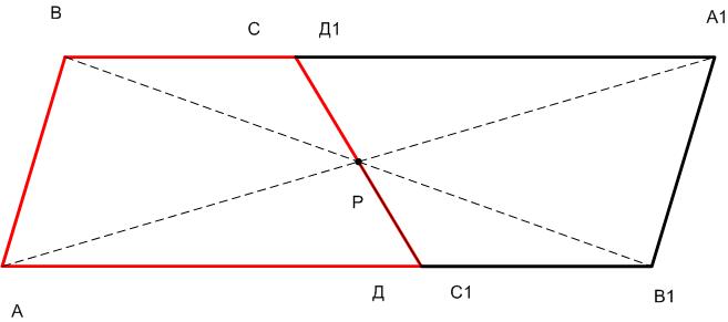 Дана трапеция АВСD. Постройте фигуру, на которую отображается эта трапеция при симметрии относительно точки Р - серидины боковой стороны CD.