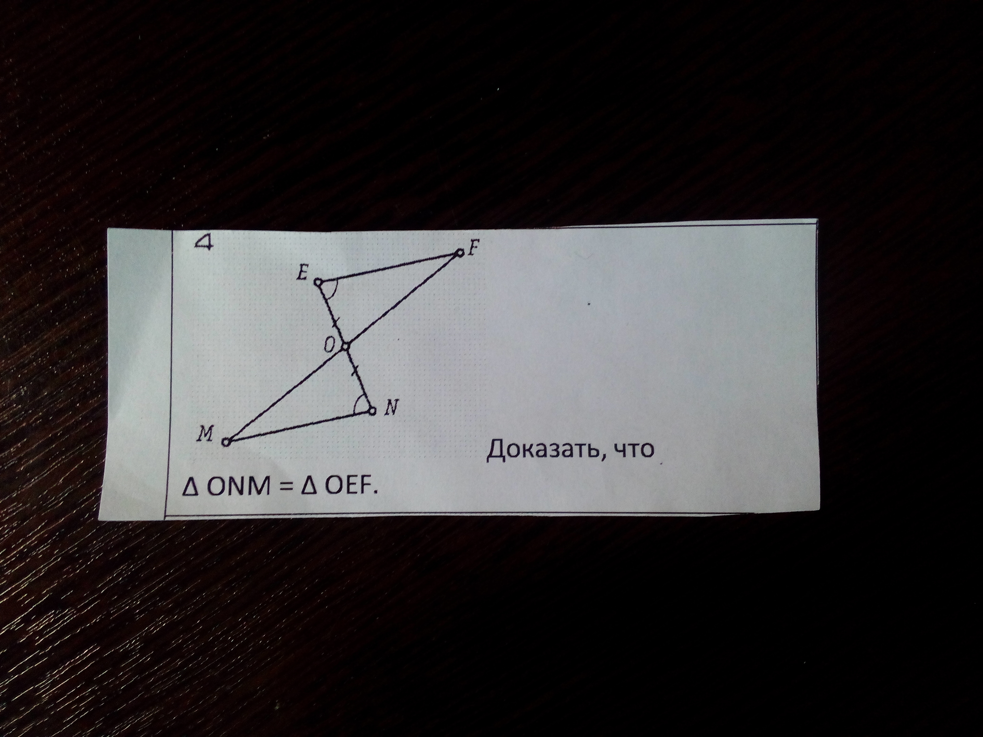 ΔONM=ΔOEF - по равенству сторон ОМ=ОЕ, и двум прилежащим к этой стороне углам ∠OEF=∠ONM, ∠EOF=∠MON.