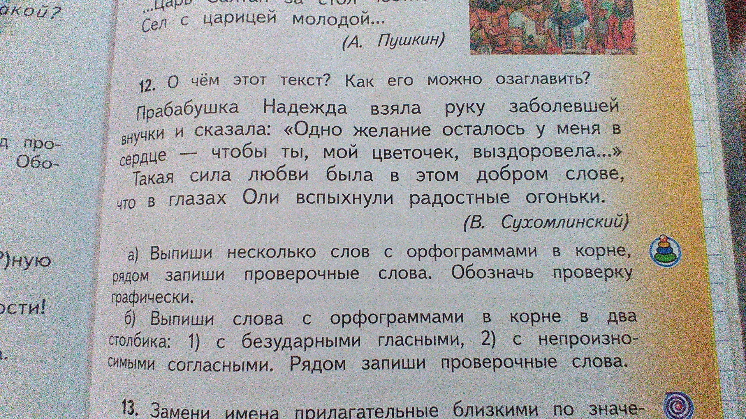 1)Надежда- надя,взяла-взять,заболевшей-боль,цветочек-цвет,выздоровела-здоровый,огоньки-огонь; 2)Сердце