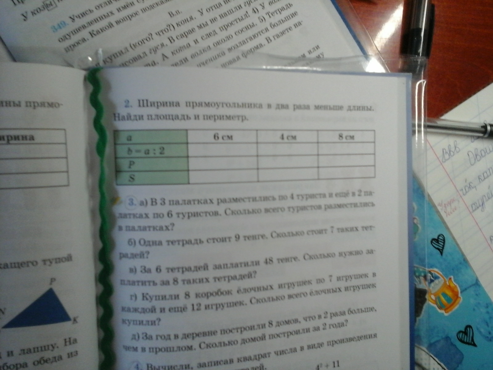 1.2)4:2=2(см)-ширина 2.2) 4+2×2=12 (см)-P