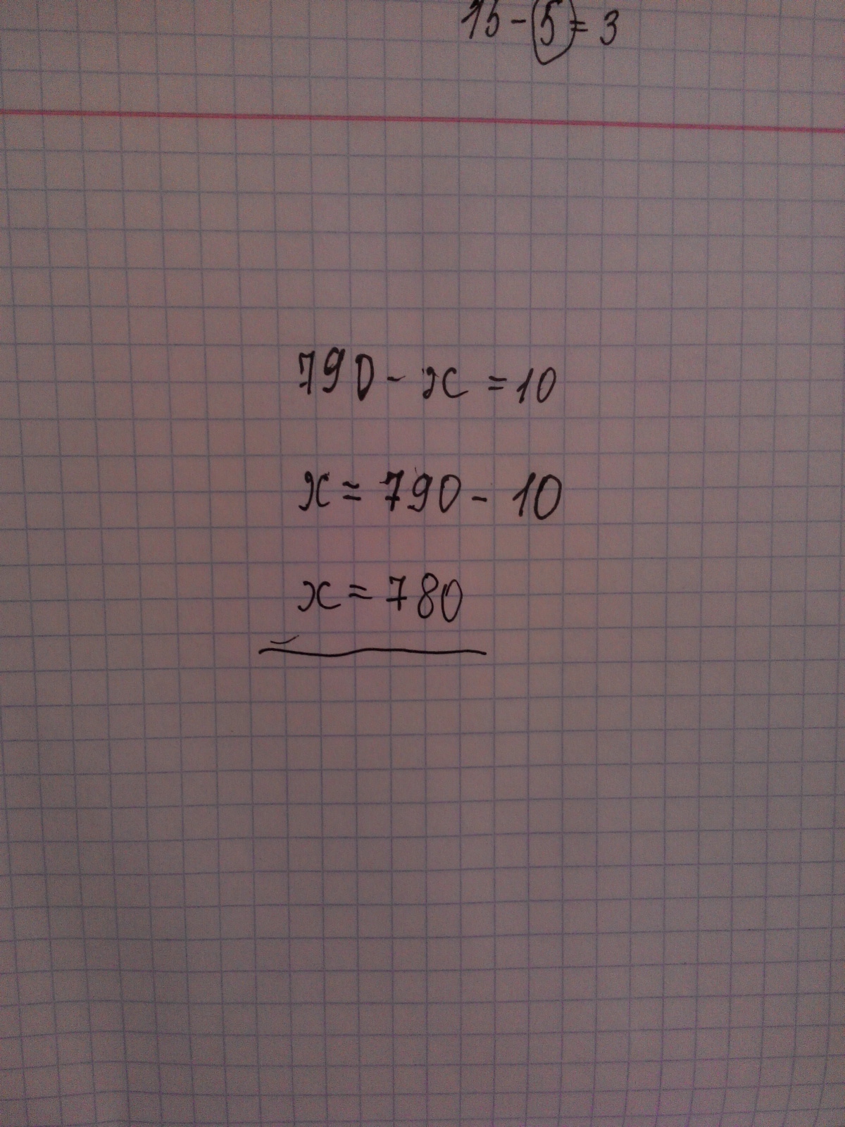 в каком из уравнений неизвестное находится вычитанием 1)790-X=10,2) X:10=790,3) 790:X=10,4) X-560=40