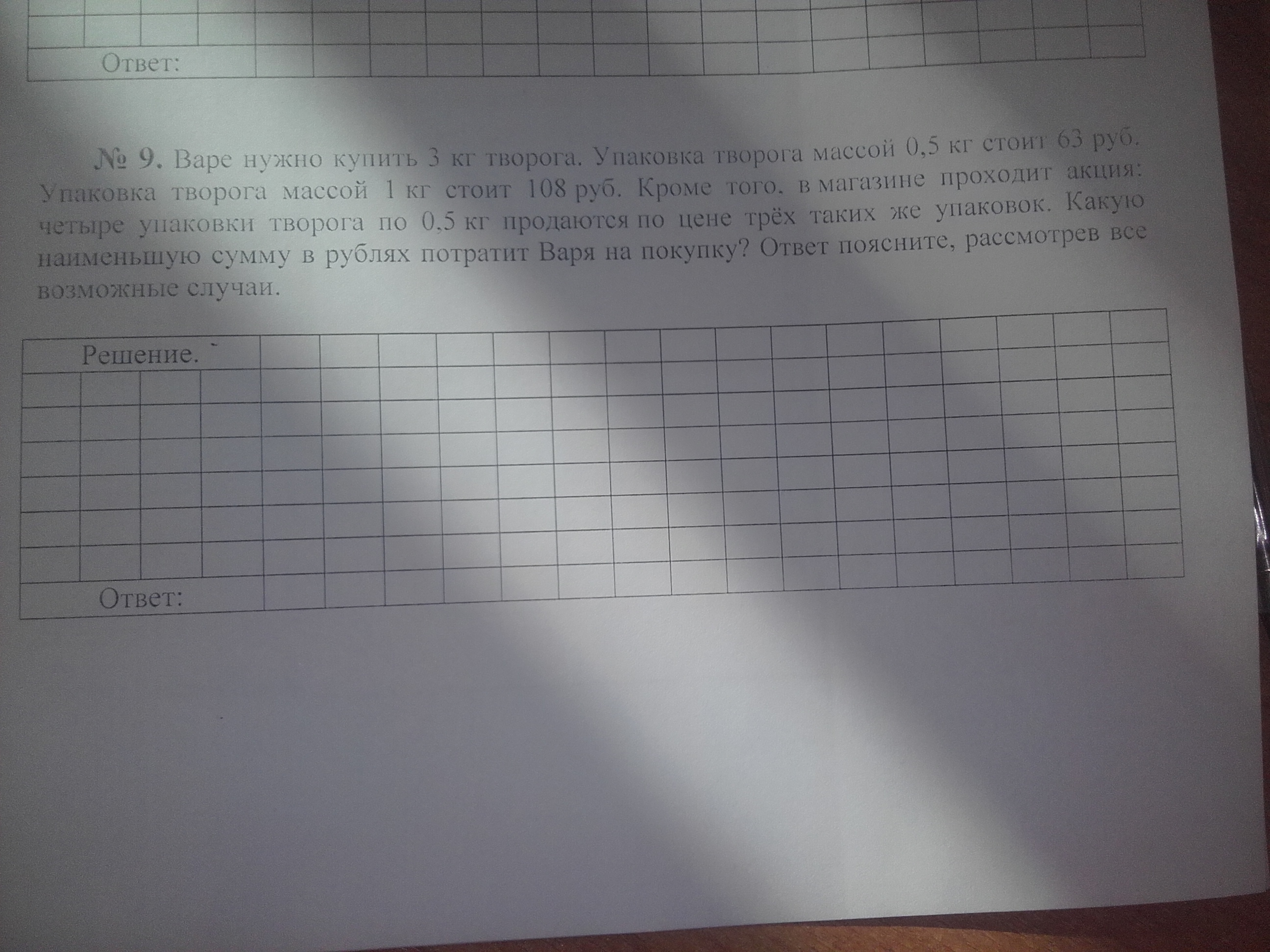 2. Варя может купить 3 упаковки творога по 1-му килограмму.