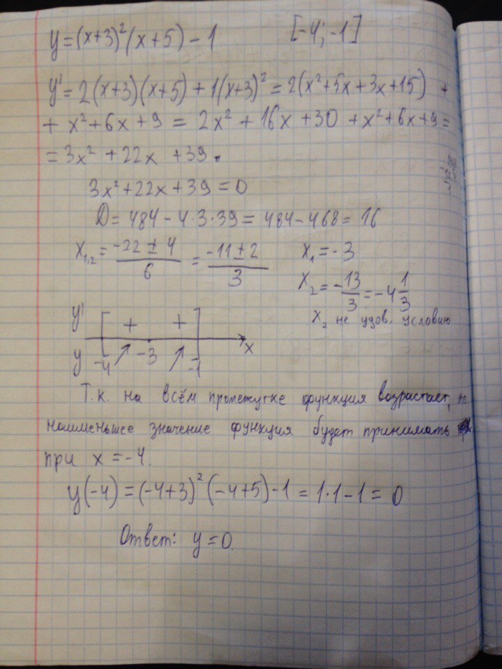 по правилу знаки +-+, и тогда наименьшее будет от x(-3)=-1