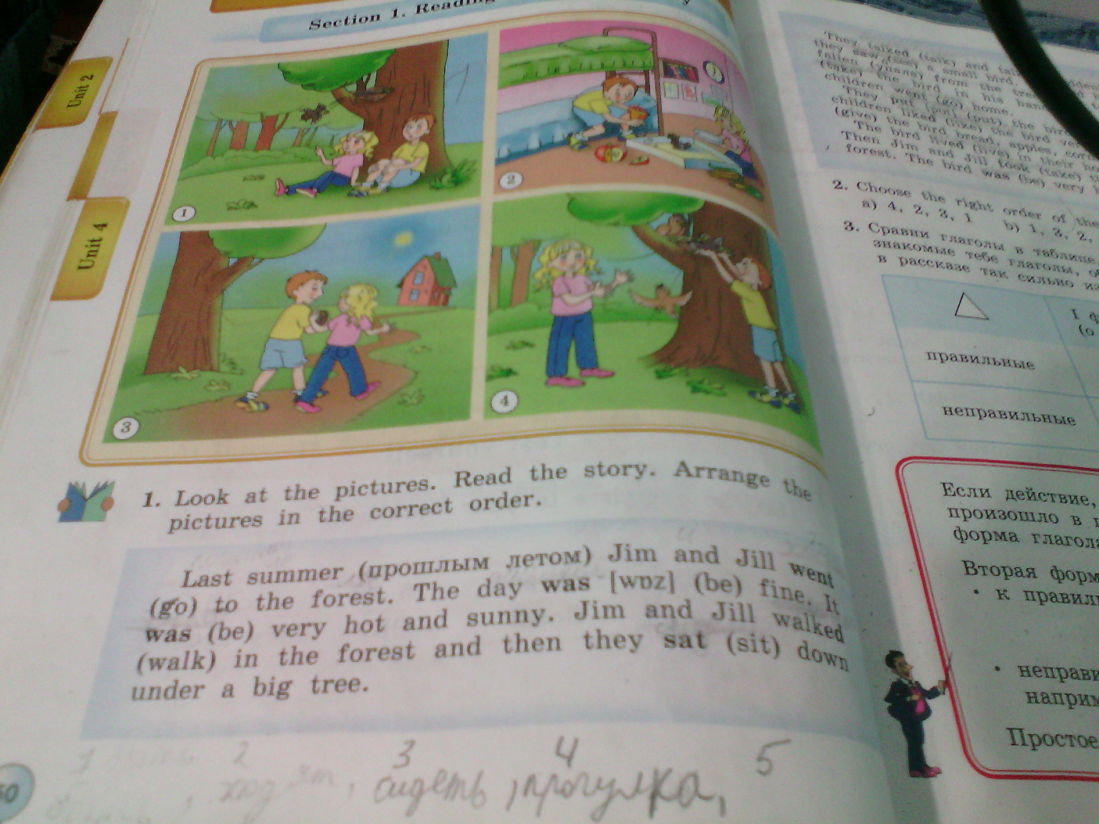 Прошлым летом Джим и Джил пошли в лес.День был забавный.Было очень тепло и жарко.Джим и Джил гуляли по лесу и сели под большое дерево.