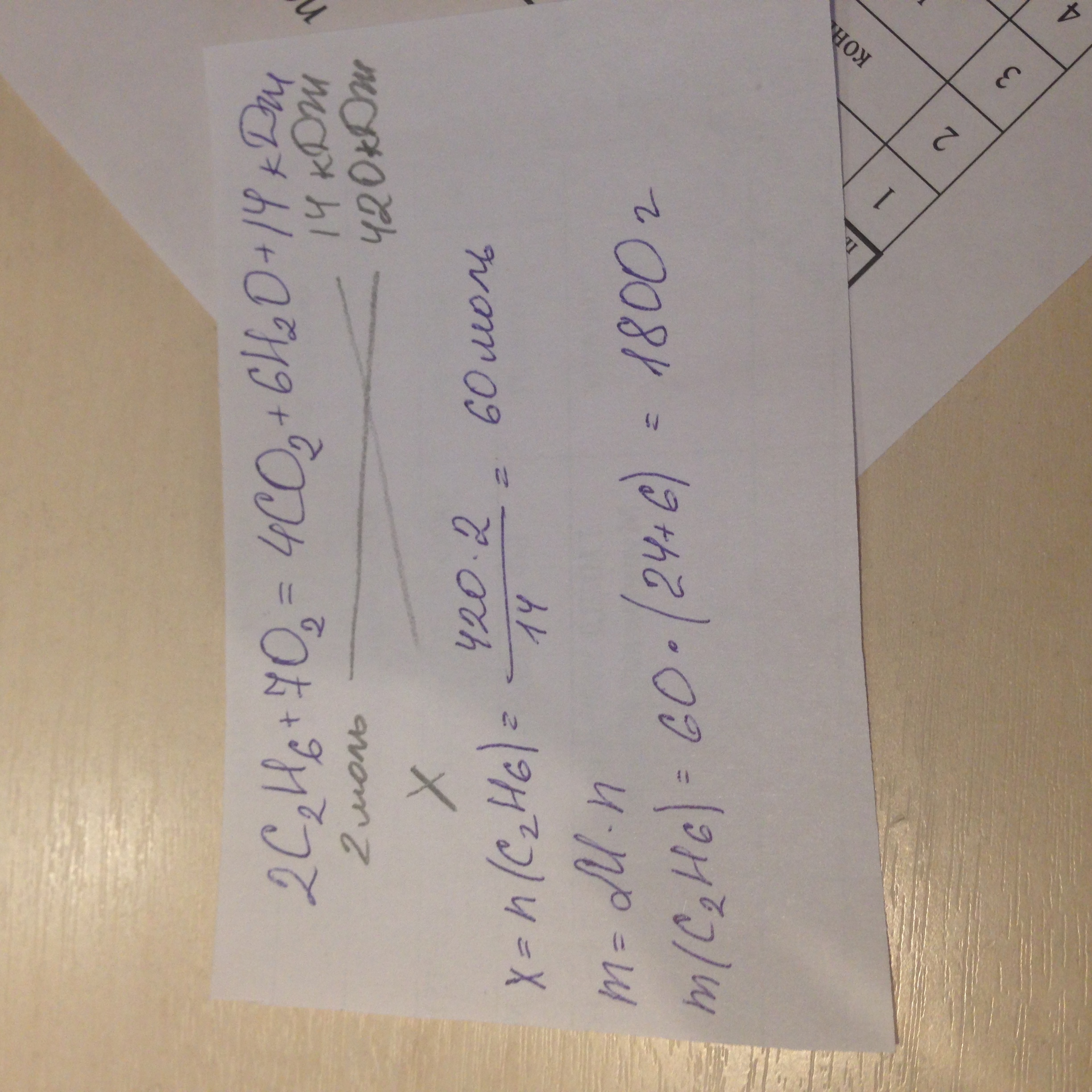 по термохимическому уравнению реакции 2C2H6+7O2=4CO2+6H2O+14кДж определите,какая масса C2H6 сгорела,если при этом выделилось 420 кДж тепла