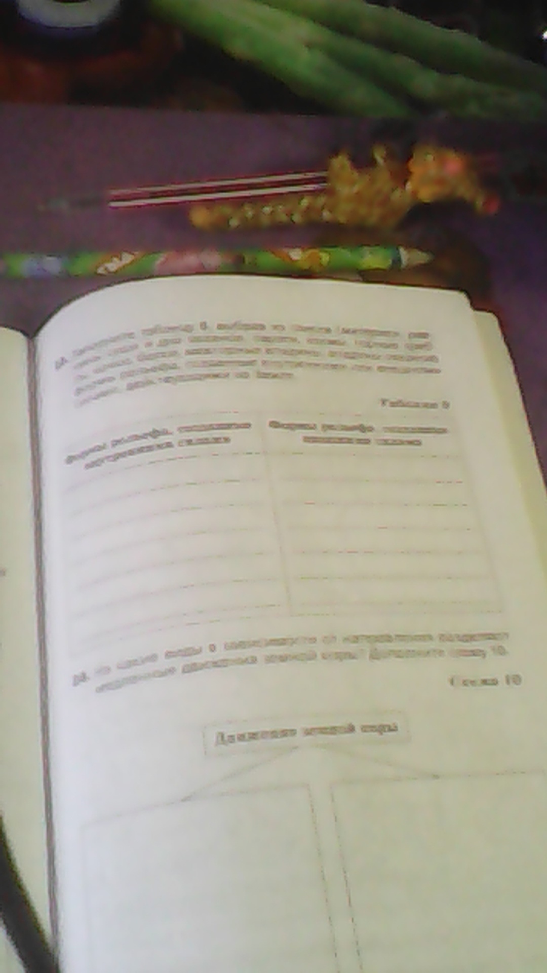 заполните таблицу 8 выбрав из списка материки , равнны, суши, дно океанов, овраги, холмы , кочки, хребты горные, впадины,
