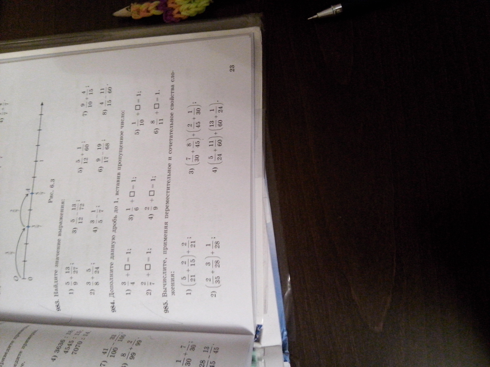 В первом лучше сначало сложить дроби 5/21+2/21 (у них знаменатель одинаковый), затем прибавить 2/15.