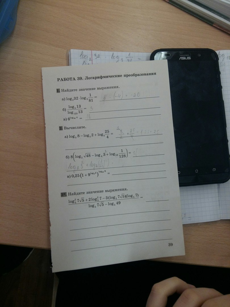 ( (log(5;7√5)-log(5;7))^2 + log(5;7)*( log(5;7)-log(5;7√5) ) )/(log(5;7√5)-log(5;49) )= ((log(5;√5))^2-log(5;7)*log(5;√5))/log(5;√5/7)=(1/4-1/2*log(5;7))/log(5;√5/7)=1/4*(1-2log(5;7)/log(5;√5/7)=1/4*(log(5;5)-log(5;49))/log(5;√5/7)=1/4*log(5;5/49)/log(5;√5/7)=1/2*log(5;√5/7)/log(5;√5/7)=1/2 (Тк (√5/7)^2=5/49)