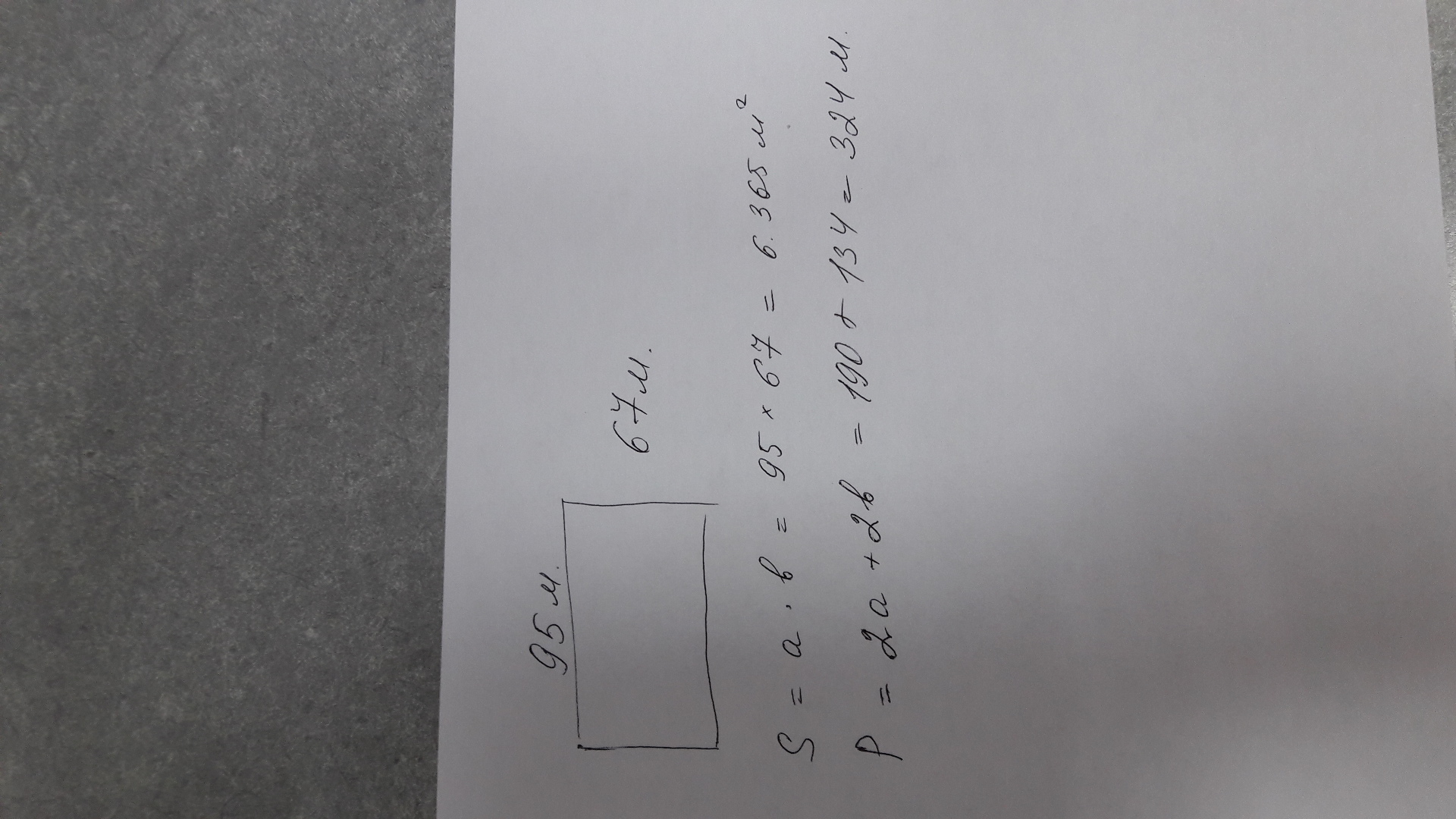 прямоугольный участок земли имеет длину 95 метров и шириной 67 метров Найдите площадь и периметр участка