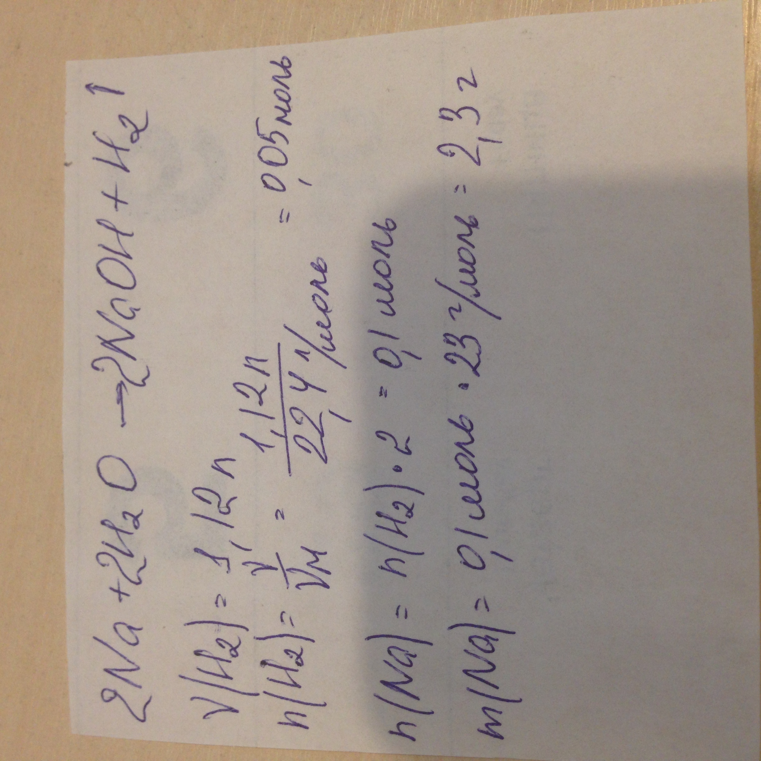 1) при "растворении" какой массы натрия в воде выделится водород объёмом 1,12 л (н.у)