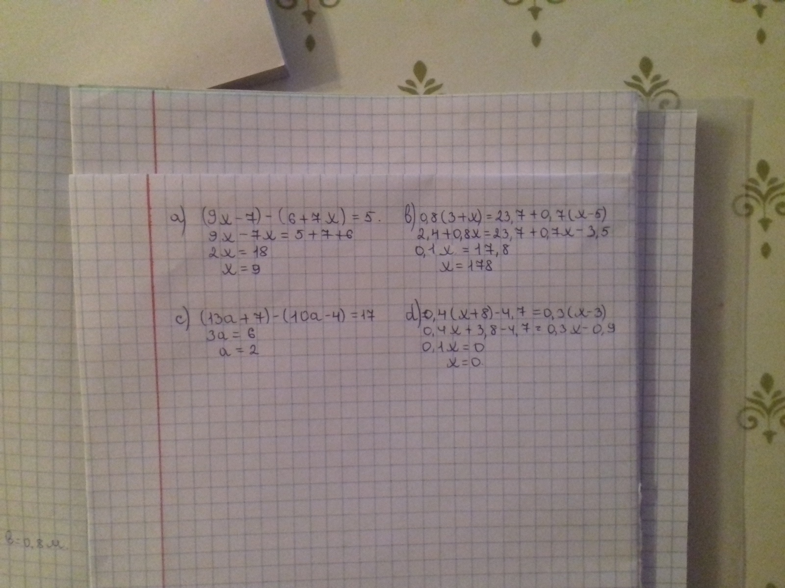 b) 0,8 (3 + x) = 23,7 + 0,7 (x - 5)