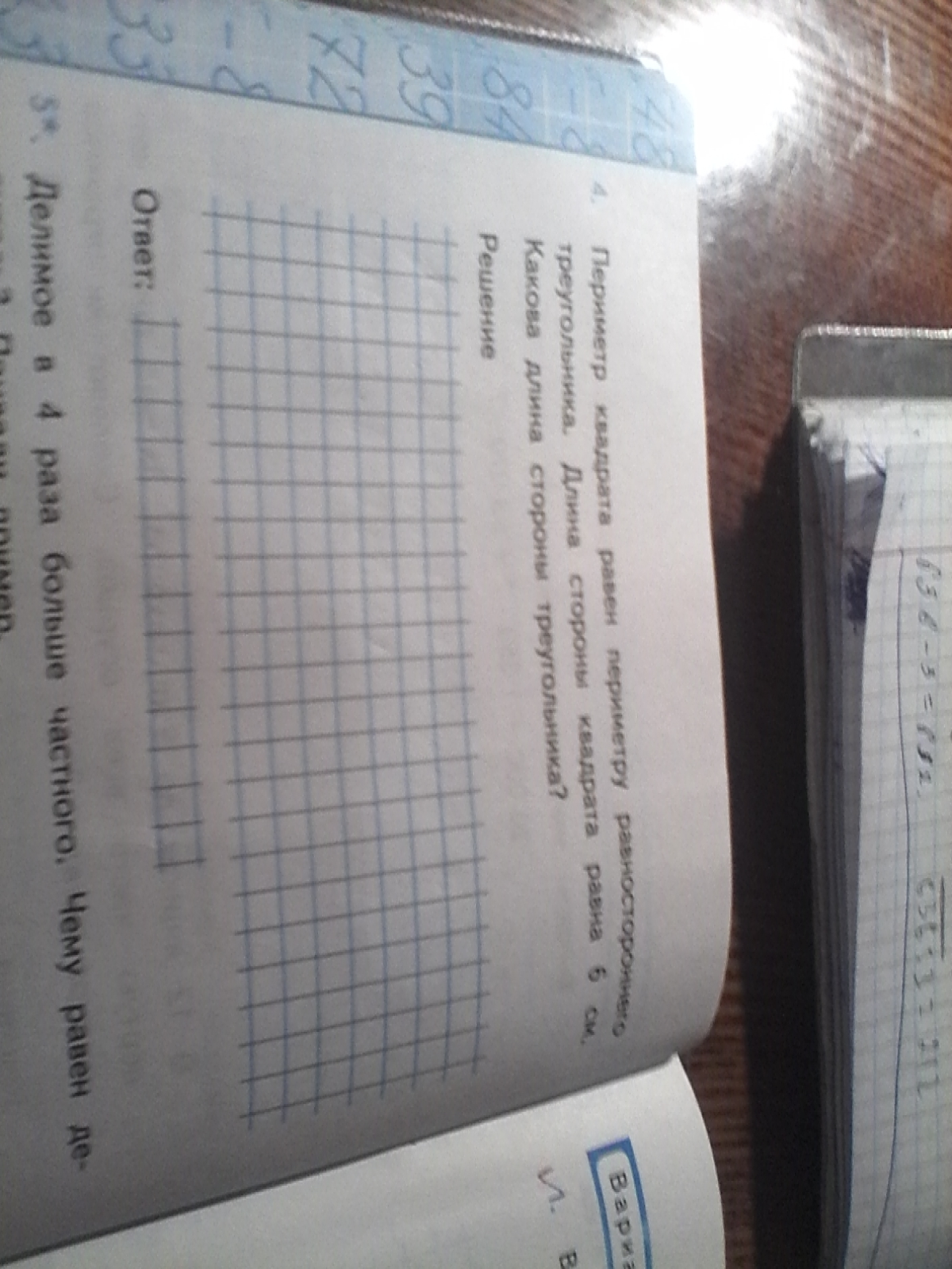 1) 6*4=24 (см) - периметр квадрата и треугольника