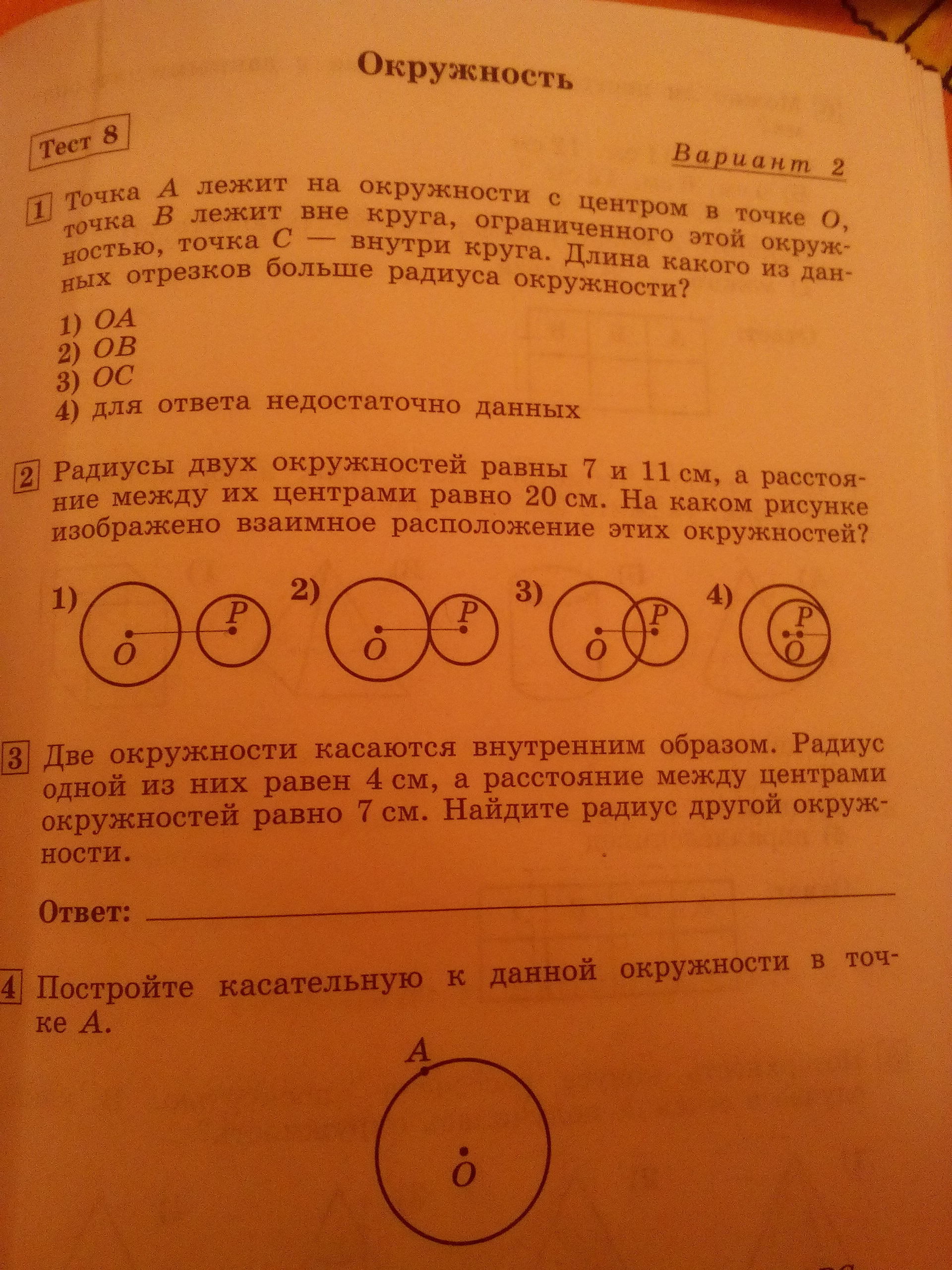 3. Т.к. они касаются внутренним образом, значит, что один круг находится в другом круге. И если у одного радиус равен 4, а расстояние между центрами 7, то радиус большей окружности будет это расстояние между центрами плюс радиус меньшего круга: