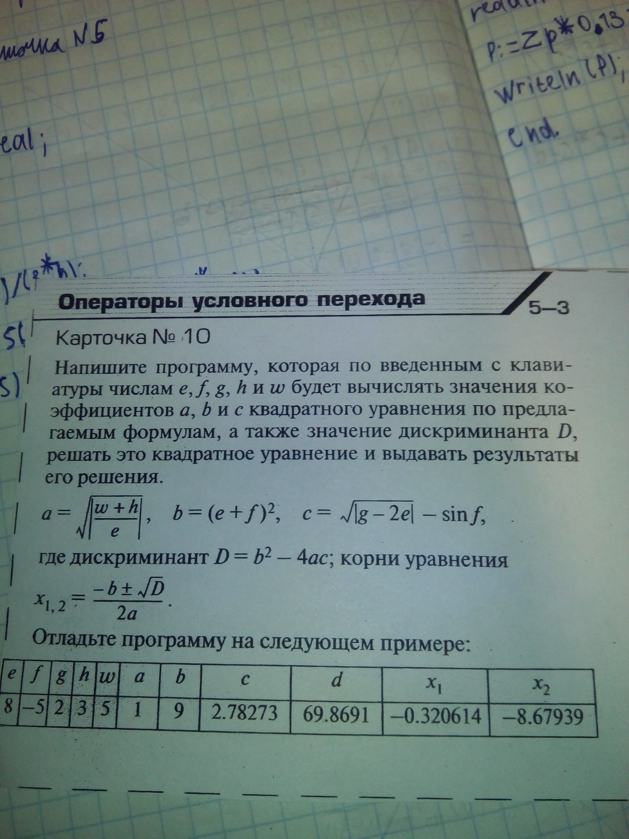 else if d=0 then begin x1:=-b/(2*a); writeln('x = ',x1); end