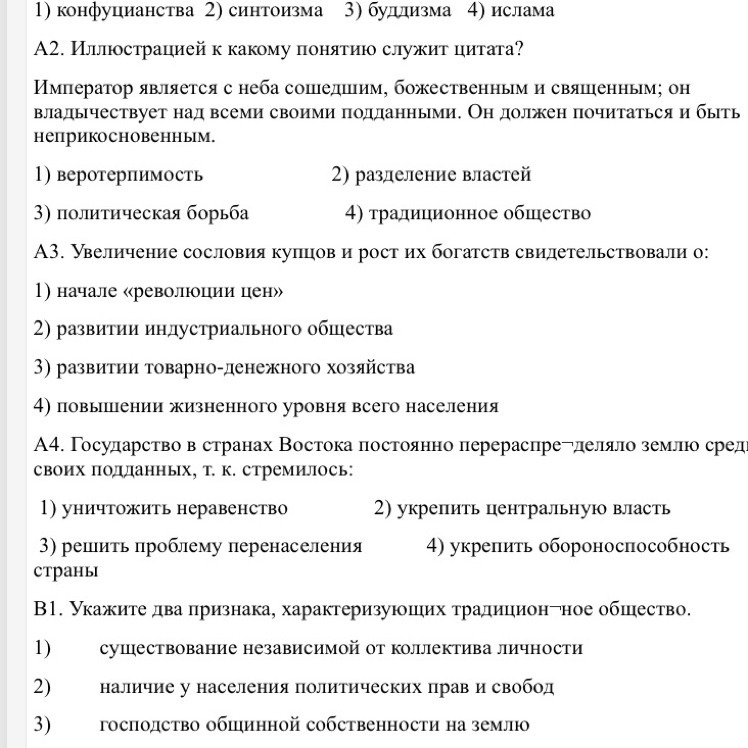 Помогите с этим чёртовым тестом,пожалуйста. 1-ый вопрос для кого характерна вера во множество Богов,а в последнем ещё два варианта ответа: 4)медленное развитие техники;