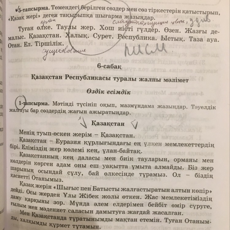 Биздин қазақ жеримз-кең байтақ ұлы жер.казак жерін құрметтеу-ол биздин парызымыз .оның ұшы - қиыры жоқ байтақ даласы, жасыл орманы, егистиги, өзен мен көлдер, калалары мен ауылдары бари -бари кимди болсын тангалдырмауы мүмкін емес
