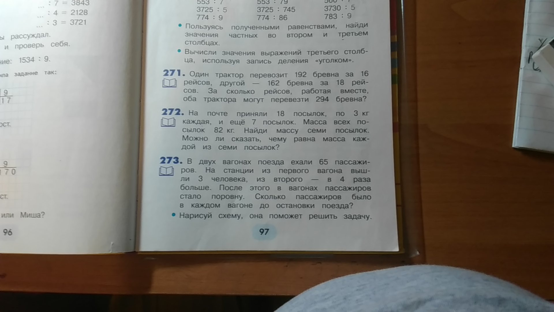 Ответ: Вместе 2 трактора перевезут 294 бревна за 4 рейса