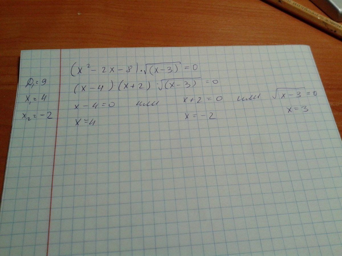 (x^2-2x-8)√(x-3)=o x-3- под корнем.