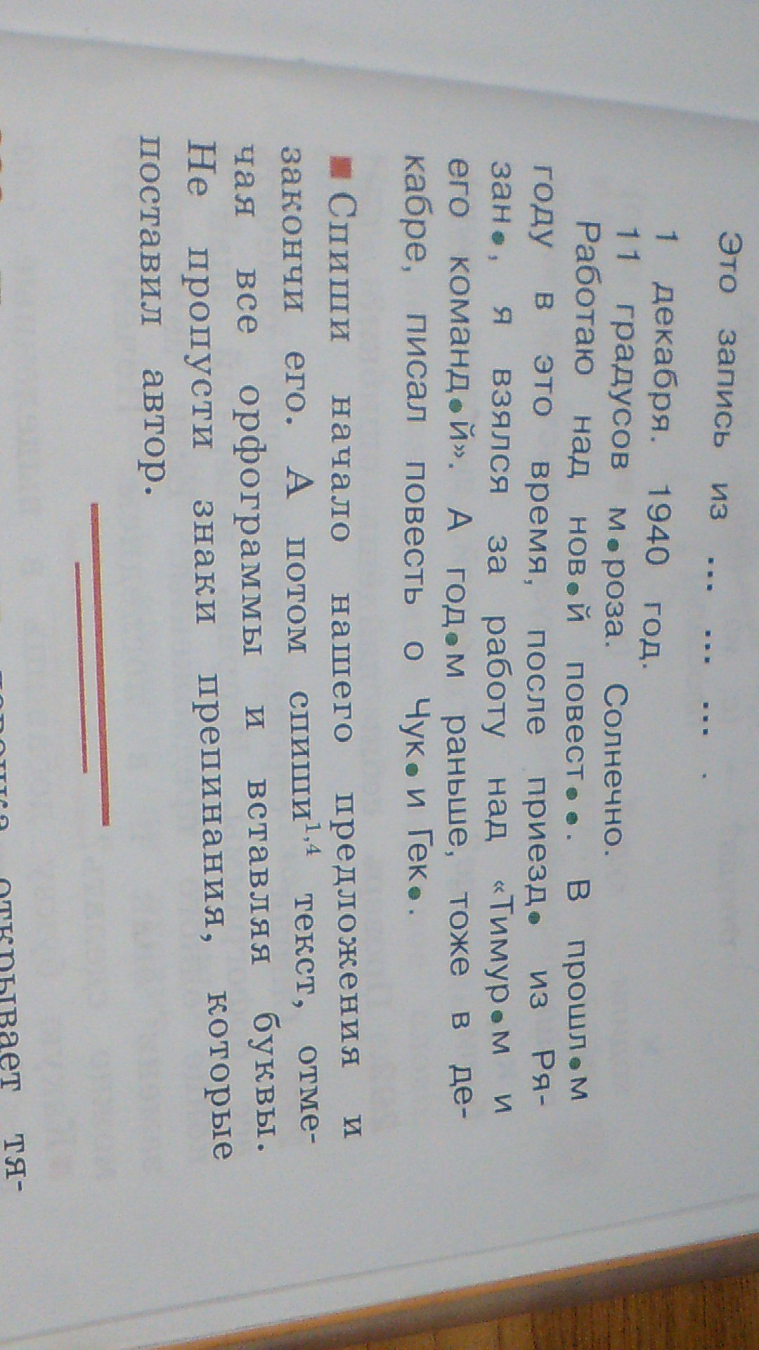 Работают над новой повестью. В прошлом году в это время, после приезда из Рязани, я взялся за работу над "Тимуром и его командой". А годом раньше, тоже в декабре, писал повесть о Чуке и Геке.