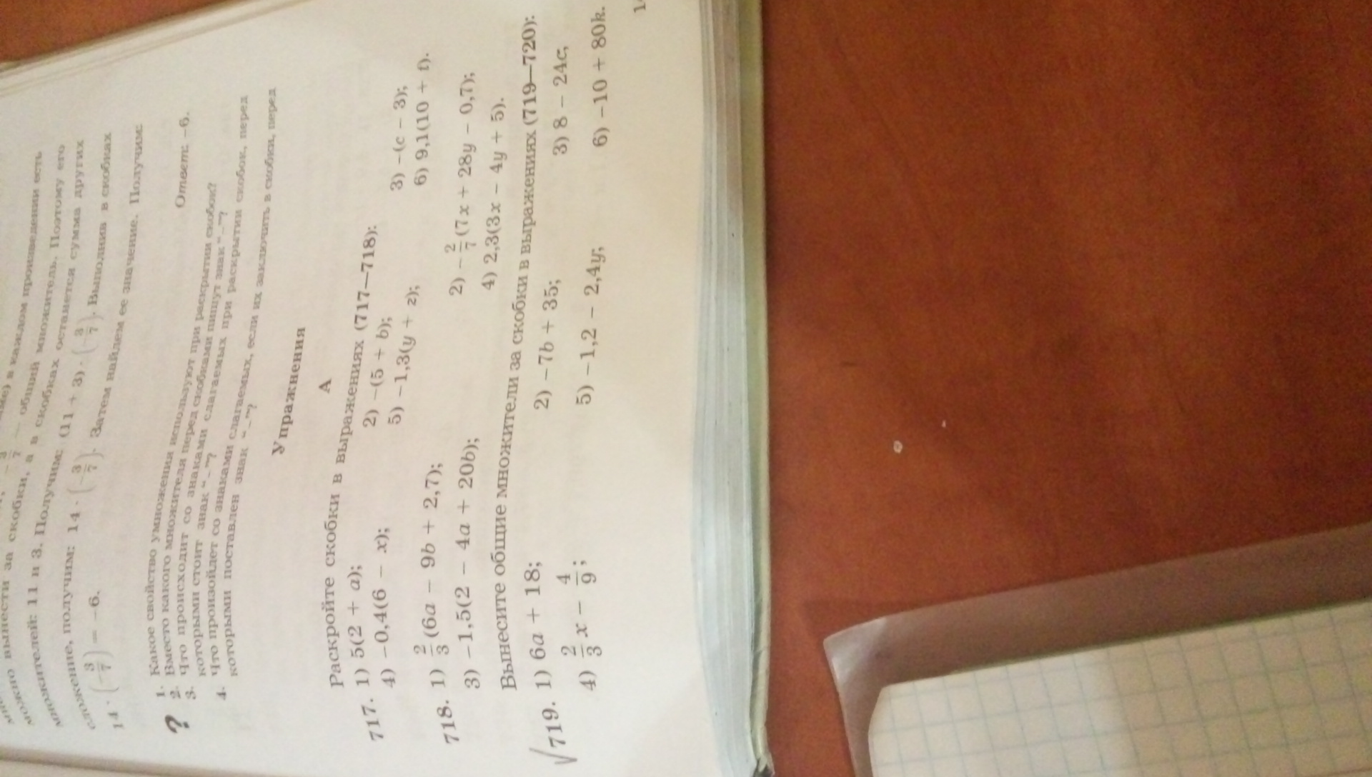 1)6(а+3); 2)7(-b+5); 3) 8-24c= 8(1-3c); 4)2/3(x-2/3); 5)1,2(-1-1,2y); 6)80k-10=10(8k-1)