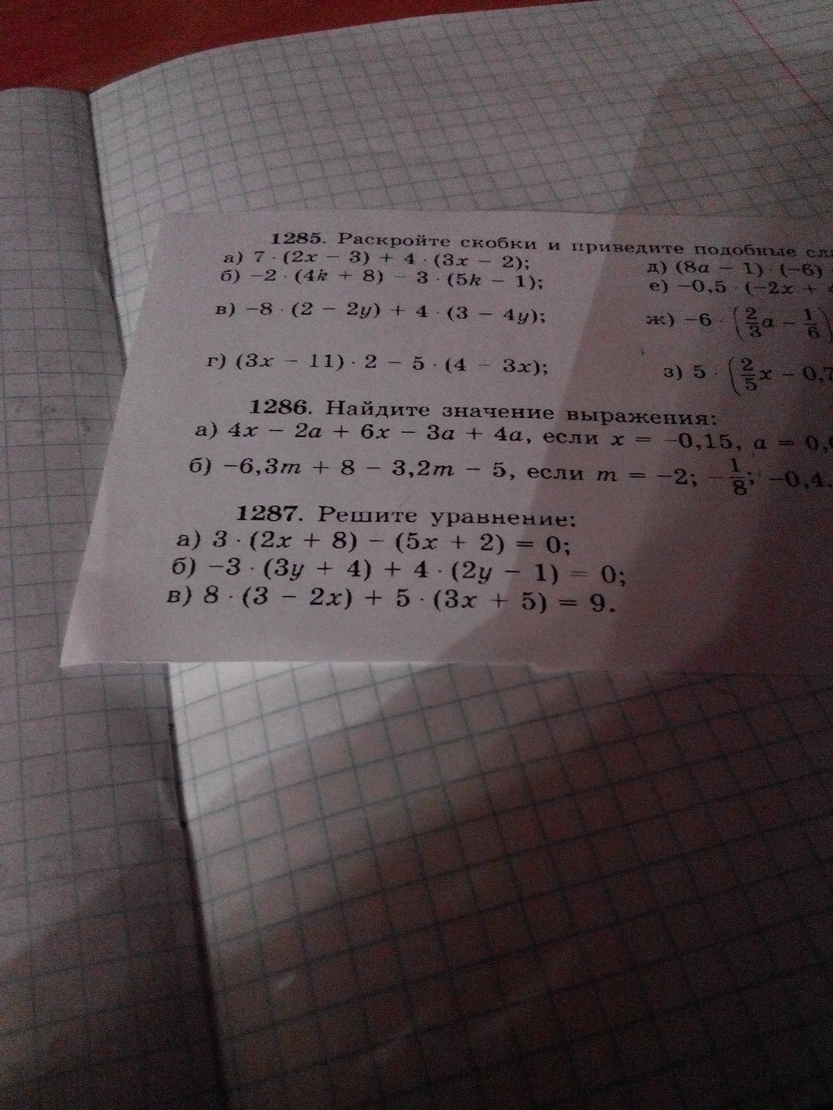 в) 8(3 - 2х) + 5(3х + 5) = 9