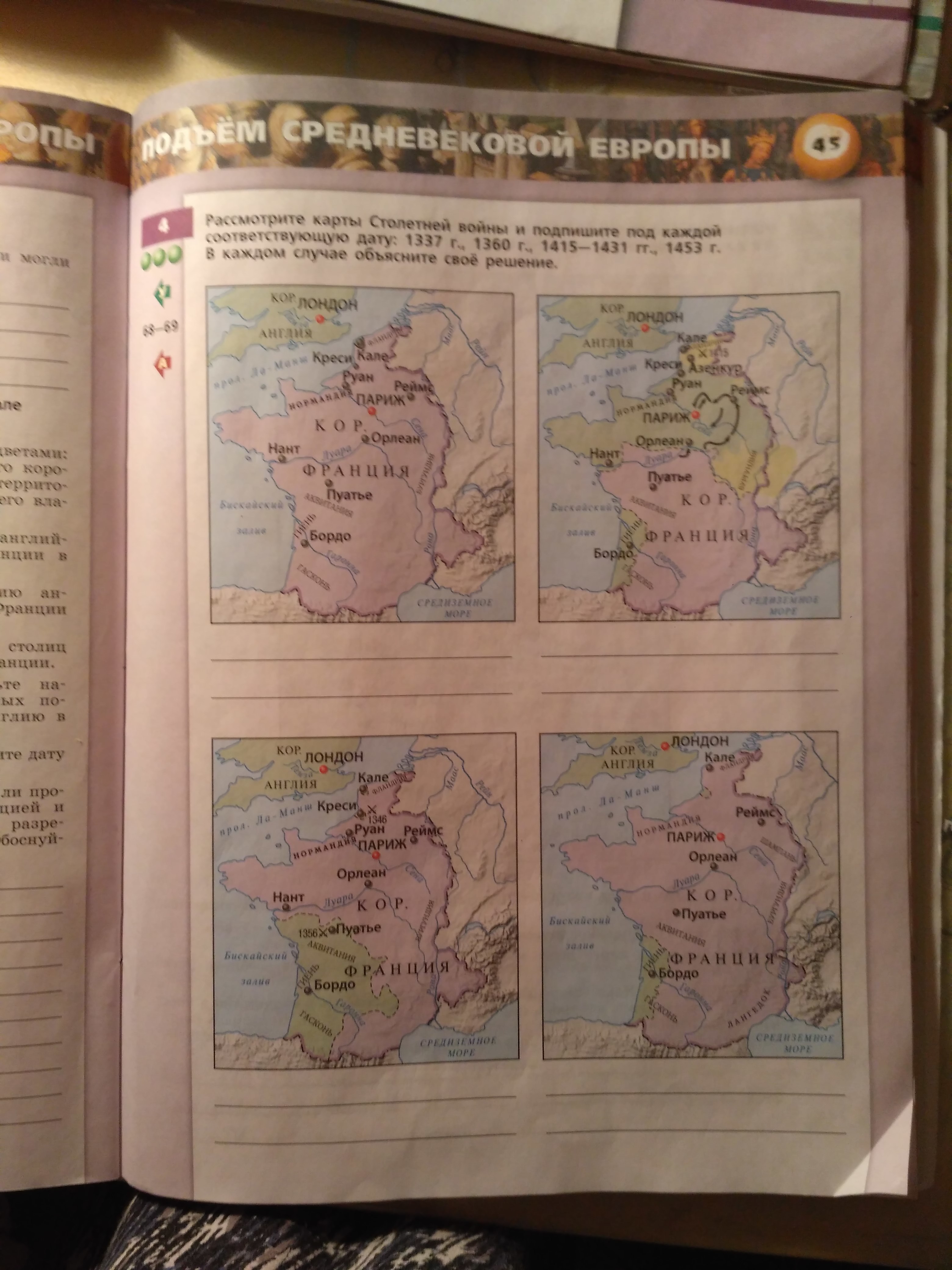 Снизу: 1) 1360 год — карта Франции после заключения мира в Бретиньи.
