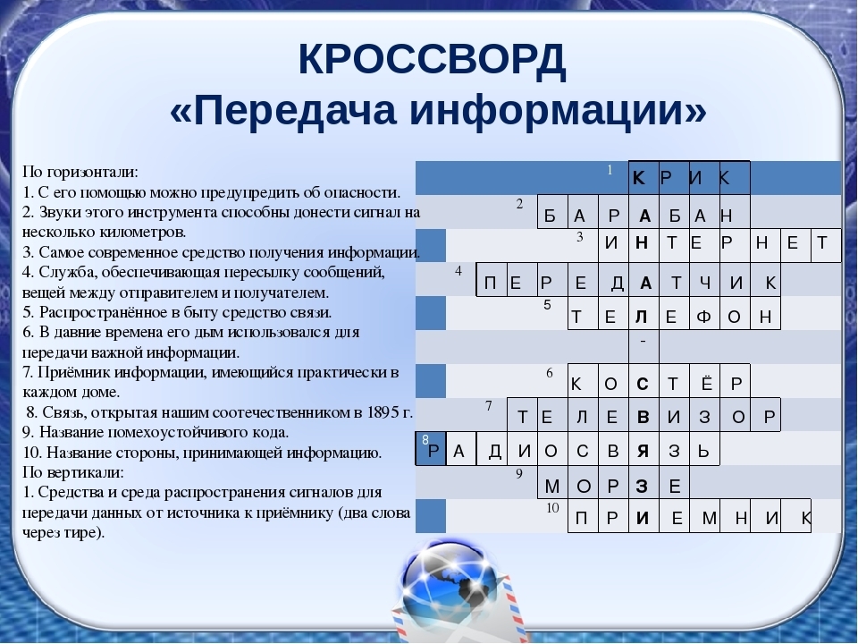 Разгадайте кроссворд передача информации 4) служба обеспечивающая пересылку сообщений, Вещей между отправителем и получателем