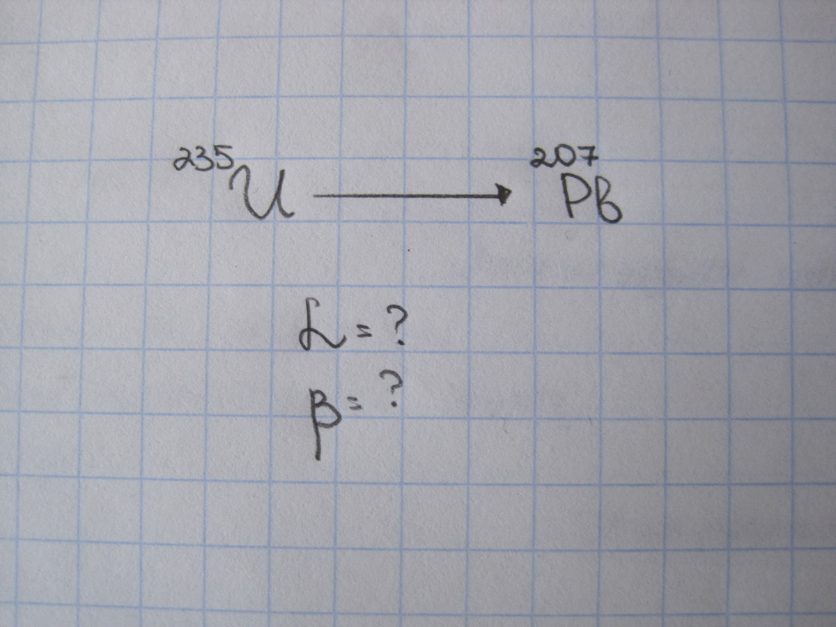 физика, 9 класс, не могу понять как делать... есть элементы таблицы Менделеева... U (с атомной массой 235) - Pb (С атомной массой 207) L=? B=? пожалуйста с объяснением...
