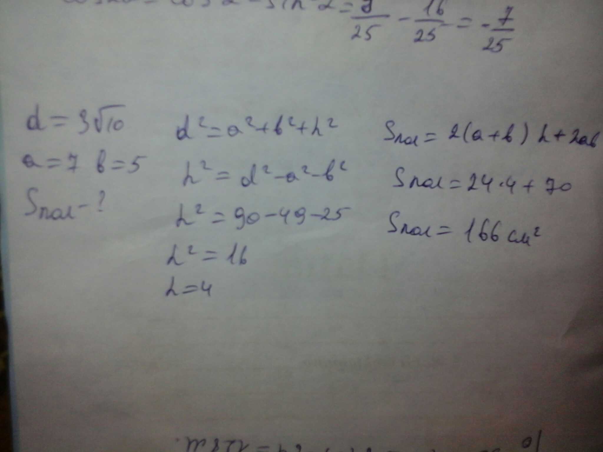 S=2*5*7+2(5+7)*4=70+96=166см²
