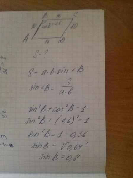 Извините за беспокойство,но почему sin^2B+(-0,6)^2=1?