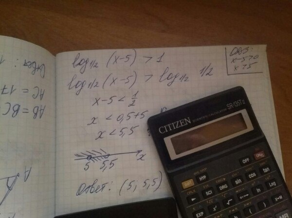 Log 1/2 (x-5)>1 D(x) x-5>0 x>5