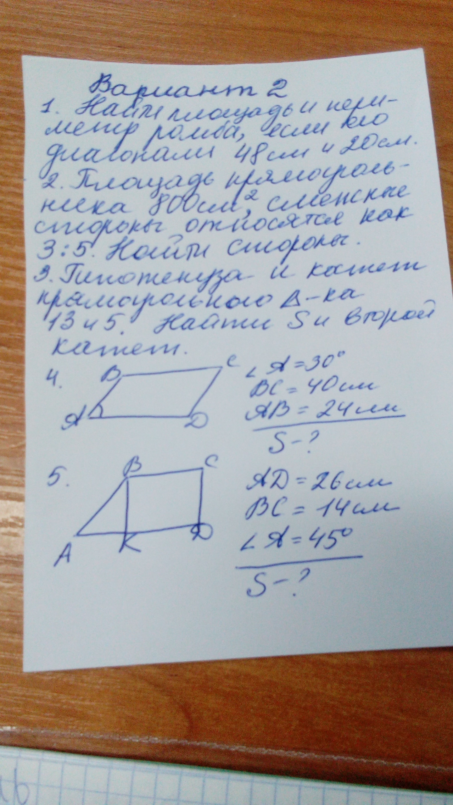 ПОЖАЛУЙСТА,ПОМОГИТЕ С 4 ЗАДАЧЕЙ,ЗАВТРА СДАВАТЬ НУЖНО! (Только без синусов,на уровне 8 класса решайте,прошу) Заранее,огромноооое спасибо!!!