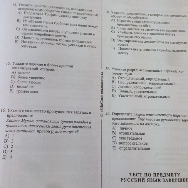 16). Хаджи-Мурат остановился, бросив поводья, и, привычным движением левой руки отстегнув чехол винтовки, правой рукой вынул ее. (Ответ E)