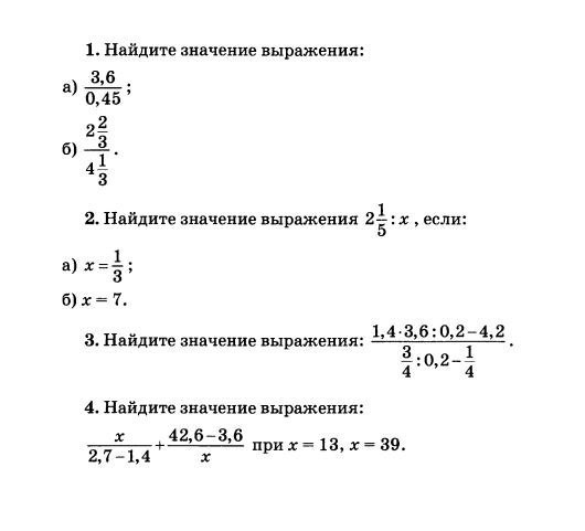 Ой, тот №3 который я написала, это №4 (просто перепутала. №3: (то что будет написано в скобках, это выражение над дробью или под ней) (21)/ (3/4:1/5-1/4) = (21) / (15/4 - 1/4) = (21) / (14/4) = (21) / (3,5) =