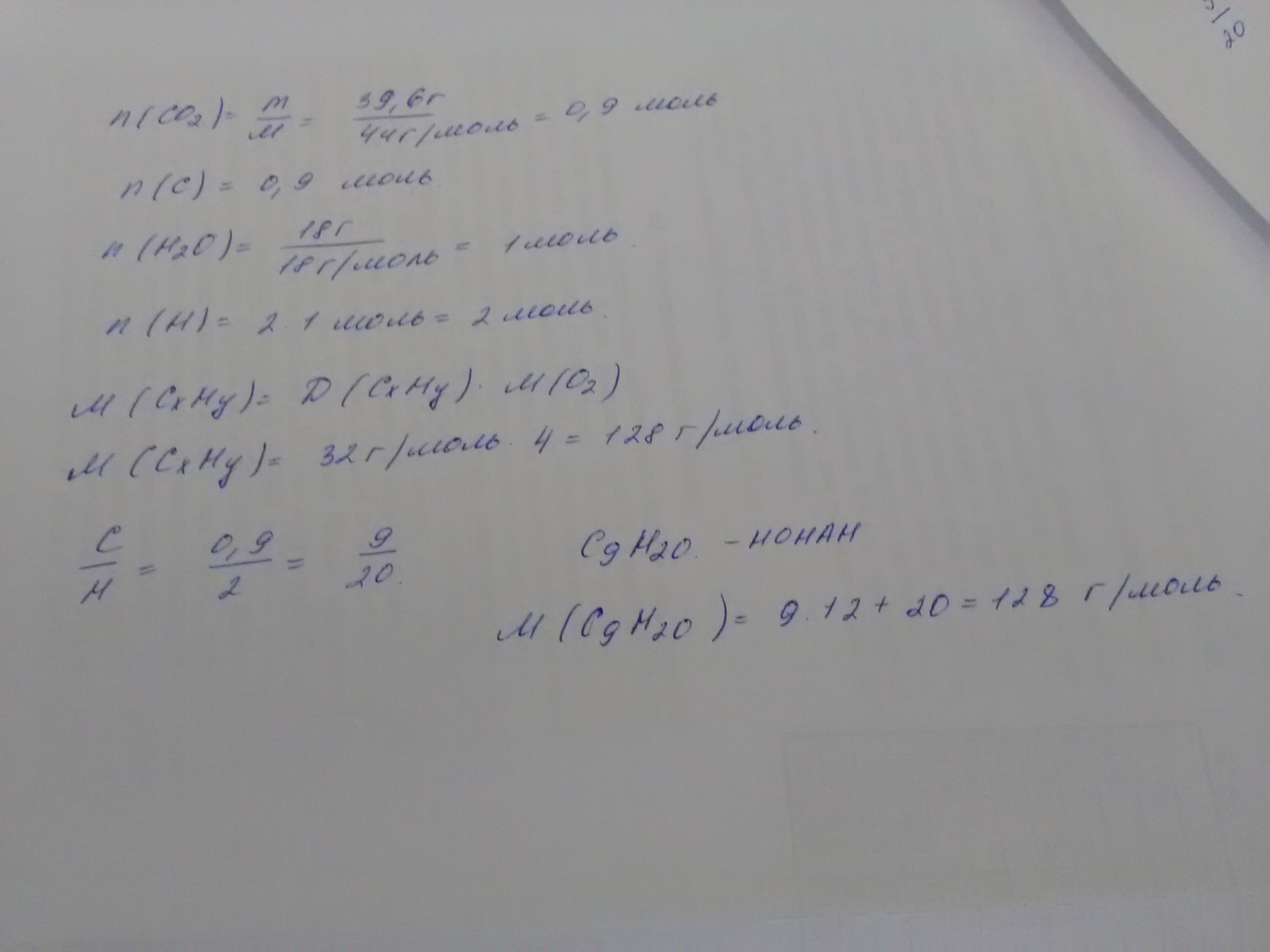 Cожгли 12,8 углеводорода при этом получили 39,6 углекислого газа и 18 г воды. Относительная плотность этого вещества по кислороду равна 4. Определите молекулярную формулу углеводорода.