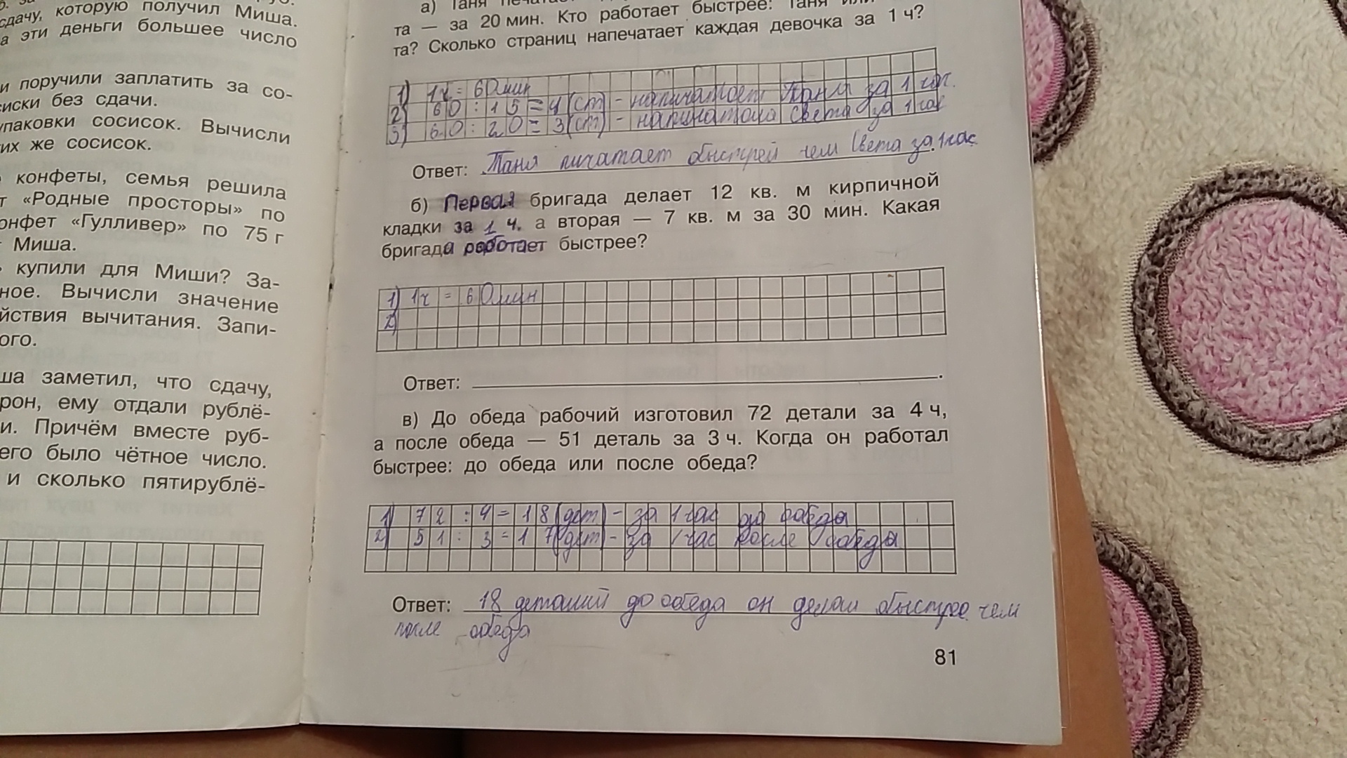Вторая бригада делает больше так как она за пол часа выполняет 7кв.м,а за час это будет 7×7